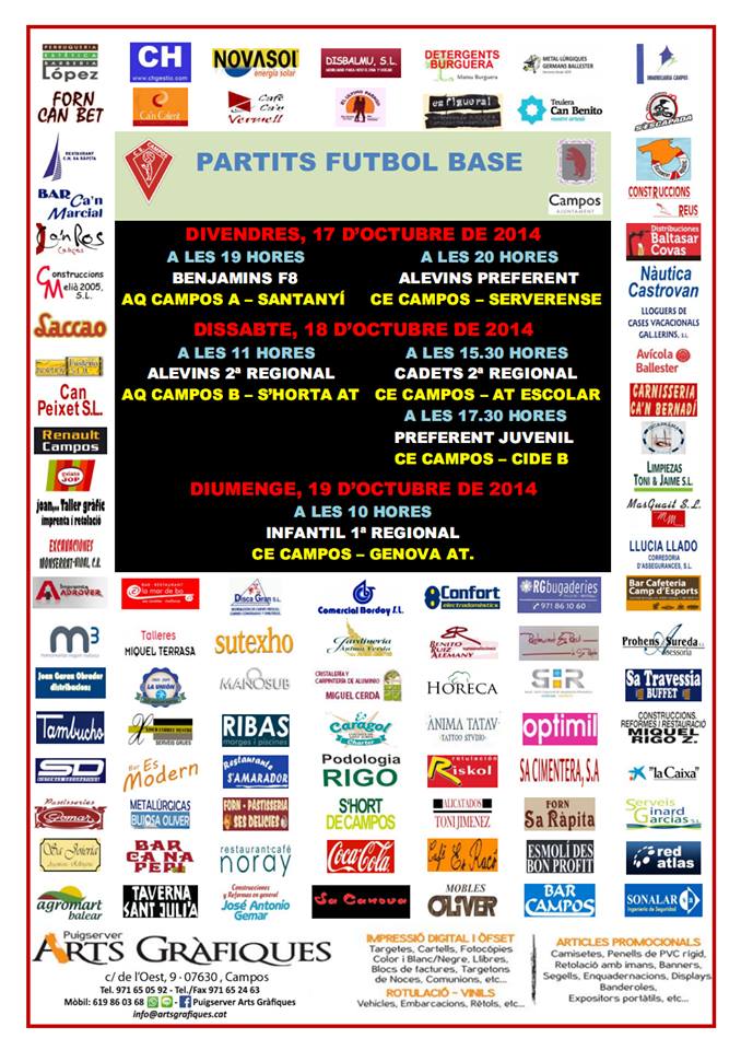 El departamento de prensa del Campos nos remite el cartel de los partidos que disputan sus equipos este proxĂmo fin de semana