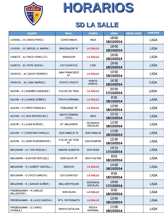 La-SalleEstos son los Horarios de los diferentes equipos del club