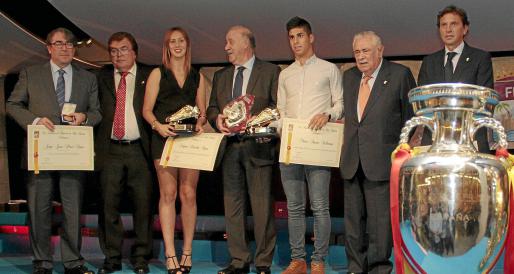 La presencia, un año más, del seleccionador Vicente del Bosque, con su habitual carácter solÃcito hacia los cientos de personas que le reclamaron una foto o una firma, lustró el multitudinario acto en el que la cuota de protagonismo menorquÃn fue para el veterano dirigente alaiorense de la Junta, Tolo Palliser, quien recibió una placa junto a otros distinguidos por su labor en pro del fútbol insular. En un marco tan festivo cabrÃa la opción de captar a más menorquines susceptibles de recibir este tipo de reconocimientos en próximas gala.
