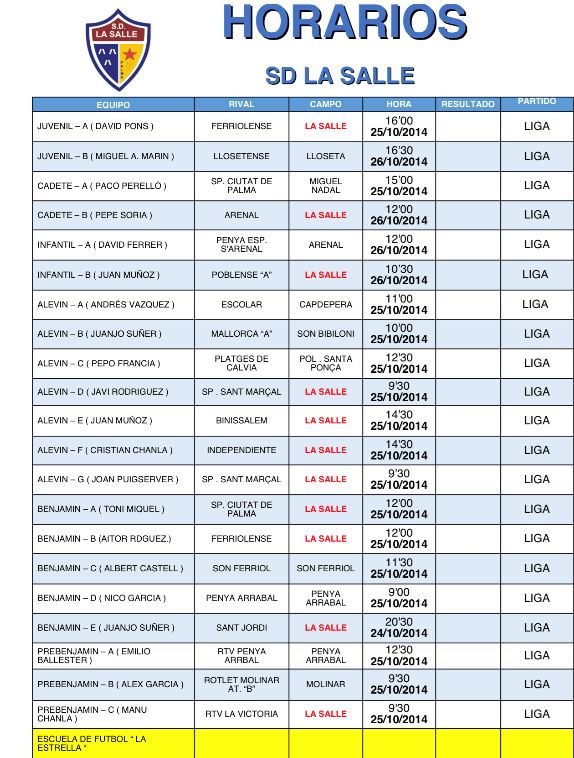 Estos son los horarios de los partidos de los diferentes equipos del club