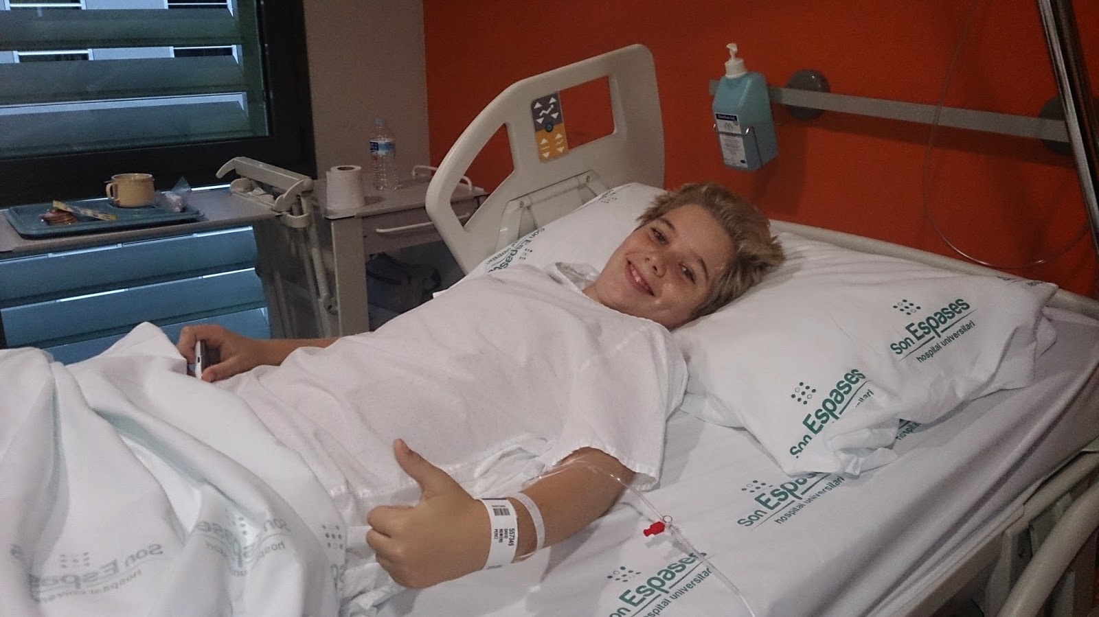 El chico ingresó en la UCI donde tras muchas pruebas finalmente no pasará por quirófano y hoy domingo al mediodía ya ha pasado a planta en el hospital de Son Espases. Dentro de la gravedad y de los lógicos dolores David está muy bien y lo único que necesita ahora es reposo; se espera que dentro de unos pocos días ya pueda volver a casa.