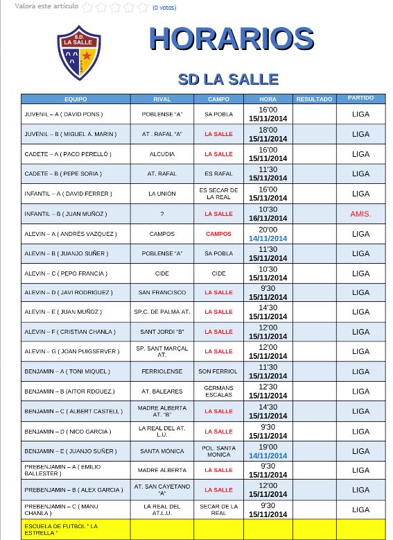 La S.D.La Salle ha hecho pĂșblicos los horarios de todos los equipos del club