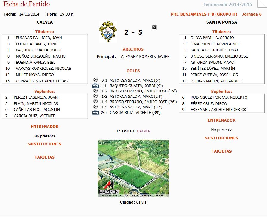 desde el primer momento el Sta ponsa puso en claro sus intenciones de ir a por el partido y a los 6 minutos ya se adelantaba en el marcador, hay que hacer constar que los dos goles locales fuerón conseguidos desde el punto de Penalty. Aquà os dejamos la ficha técnica del partido