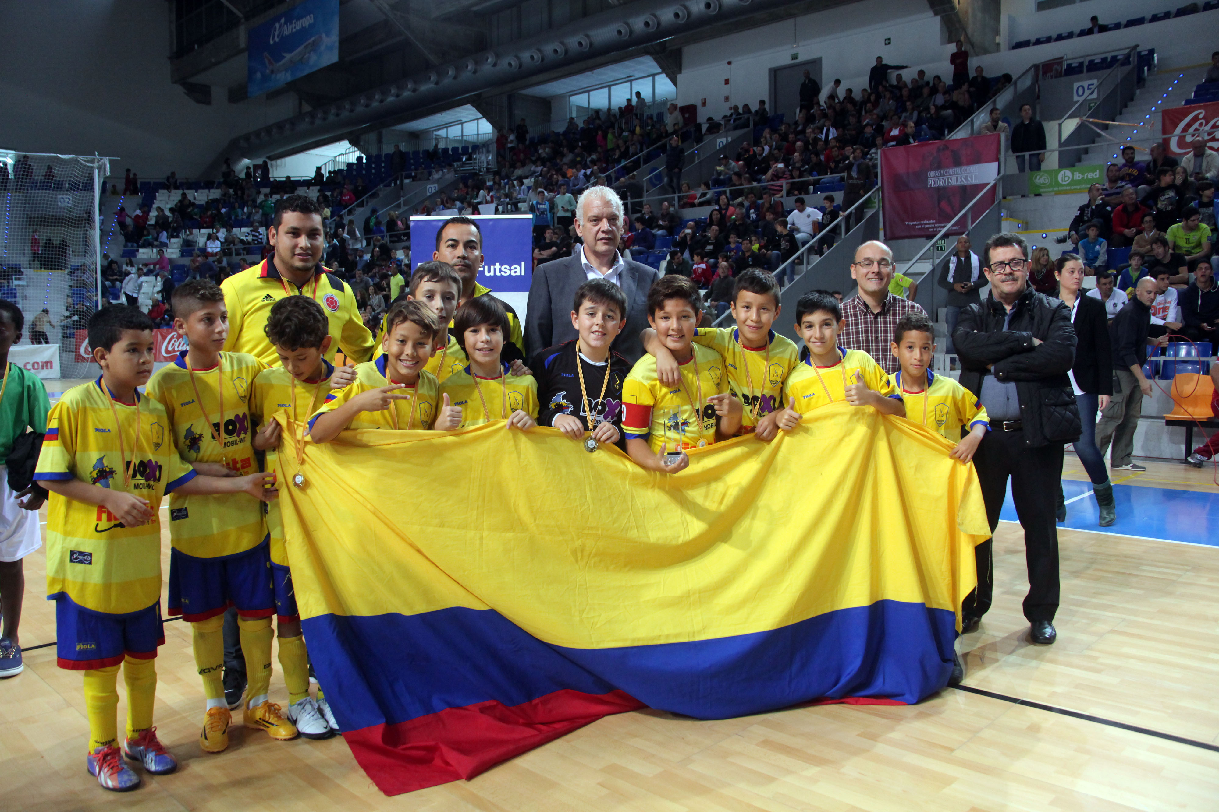 Gran espectáculo de fútbol sala el que se ha vivido este fin de semana en el Palau Municipal d´Esports de Son Moix con la celebración del III Torneo Intercultural – Ciutat de Palma de fútbol sala que ha ganado la selección de Colombia. El combinado sudamericano ha derrotado en la final a Ecuador por 1-0 en un partido disputado y que ha sido un ejemplo del torneo que ha resultado un éxito como en las ediciones anteriores. Más allá de la oportunidad para los niños de categorÃa alevÃn, de entre 9 y 11 años, esta cita ayuda a la promoción del fútbol sala y a favorecer la integración en un torneo que ha reunido a cerca de 150 niños residentes en Baleares y que se han unido en 12 selecciones para representar a su paÃs de origen. En este sentido, el torneo que organizan de forma conjunta el Palma Futsal y Baleares Sin Fronteras, con la ayuda del Ayuntamiento de Palma y del Consell de Mallorca, es un ejemplo de cómo a través del deporte los niños pueden disfrutar, divertirse y aprender valores sociales compartiendo una experiencia única para ellos.