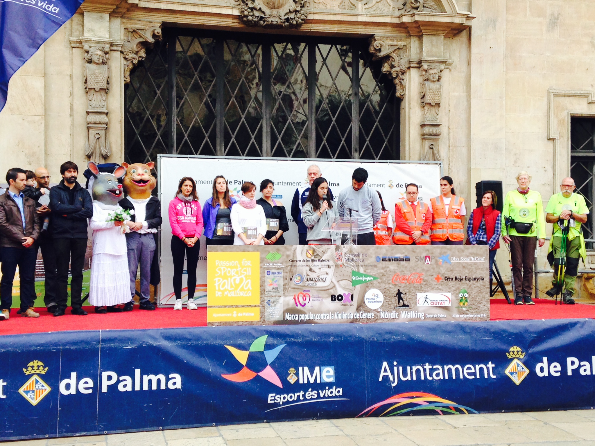 Palma de Mallorca, 23 de noviembre 2014.- La concejala de Bienestar Social e Igualdad del Ayuntamiento de Palma, Ana Ferriol y la directora general del Área, Mercedes Varela, han asistido a la lectura del manifiesto de la «Marcha popular contra la Violencia de Género – 4ª Nordic Walking Ciudad de Palma «, a cargo de Francisca Sampol y Borja Gaya, voluntarios deportivos del IME, y consensuado entre todas las fuerzas políticas municipales en el que se han sumado representantes de las 250 asociaciones y entidades que componen el Pacto Palma contra la violencia de género.