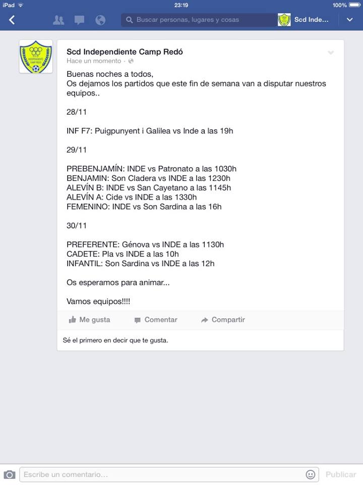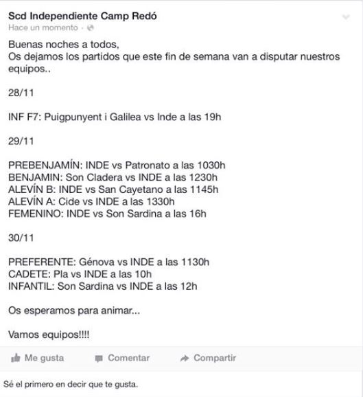 S.C.D.Independiente Camp Redo ; Horarios Fin de semana