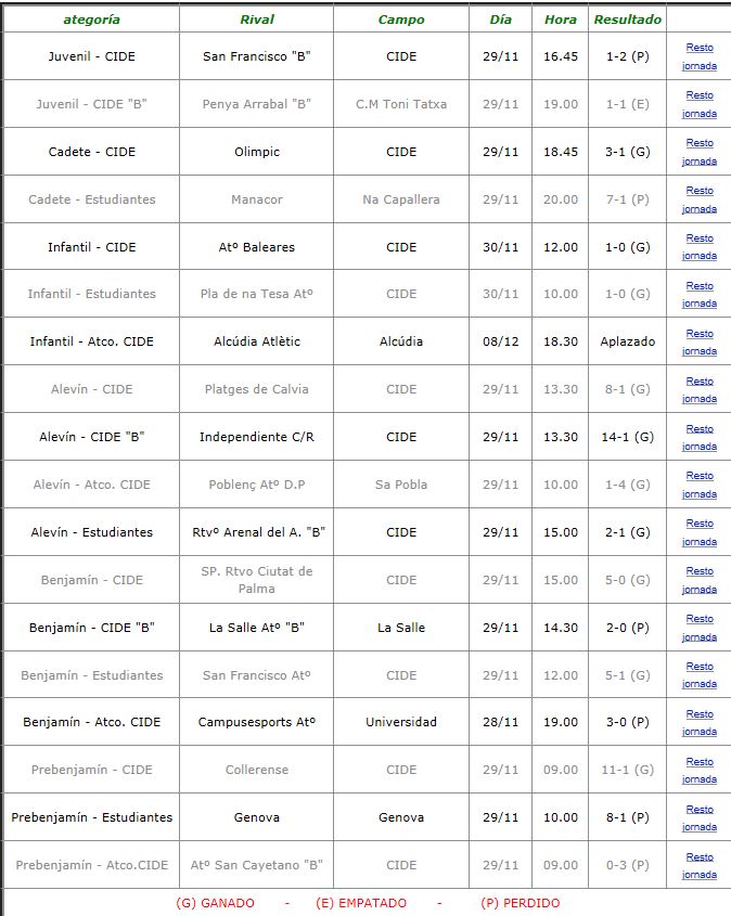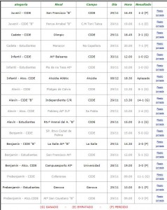 Estos son los resultados de los diferentes equipos del club PINCHA AQUI PARA AMPLIACION RESULTADOS