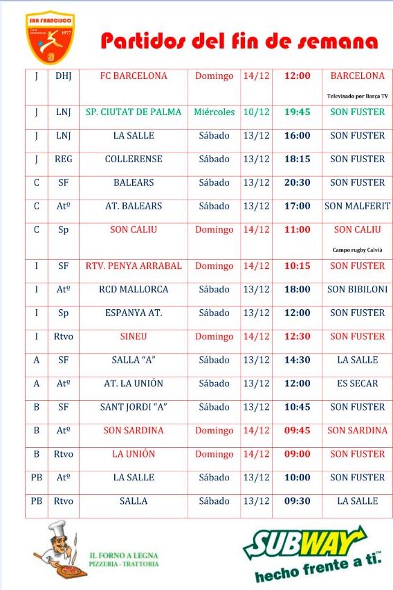 Estos son los Horarios de todos los equipos del club para este proxímo fin de semana.