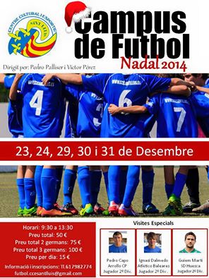 Aquest Nadal , no deixis el futbol de costat. Acaba el 2014 amb el Campus de Nadal . Dirigit per Pedro Palliser i Victor Perez i amb la presència de Guillem Marti Ignasi Dalmedo Sintes i Pedro Capó Payeras