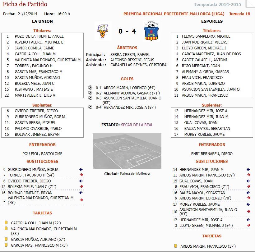 Tercera Regional ; La Unión- C.F.Esporles (0-4)