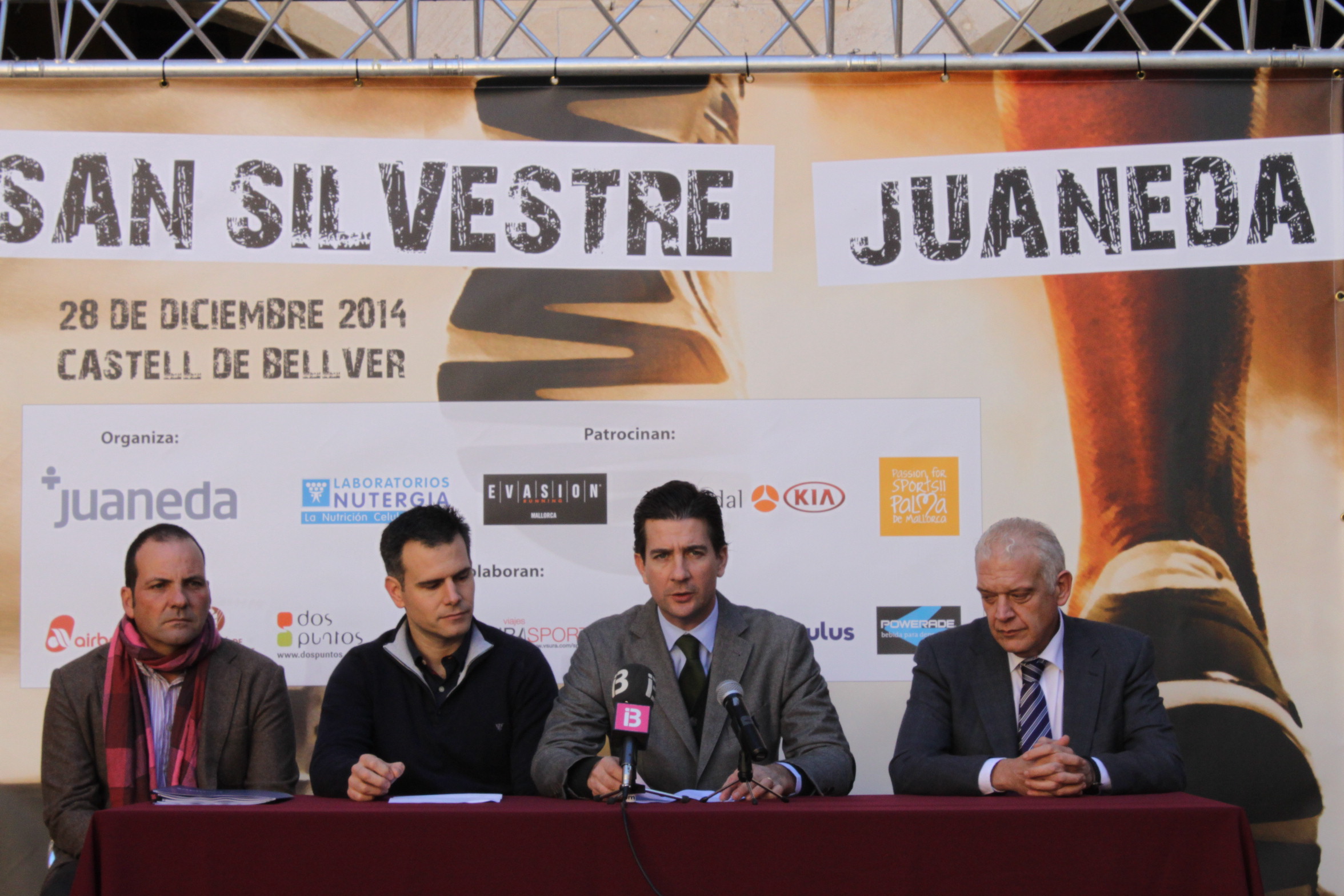 Palma, 23 de desembre de 2014.- Aquest matí s’ha presentat al castell de Bellver la segona edició de la carrera Sant Silvestre Juaneda. La prova tindrà lloc el diumenge 28 de desembre i la sortida i arribada serà al castell. A l’acte han assistit Fernando Gilet, tinent de batlia de Cultura i Esports de l’Ajuntament de Palma, Damià Vic, director general d’Esports de l’Ajuntament de Palma, Joan Alguersuari, director mèdic de la Xarxa Assistencial Juaneda i David Thompson i Pedro Andreu, de l’empresa organitzadora Kumulus. Els organitzadors esperen que aquest any s’inscriguin a aquesta carrera lúdic-esportiva prop de 1.200 corredors.