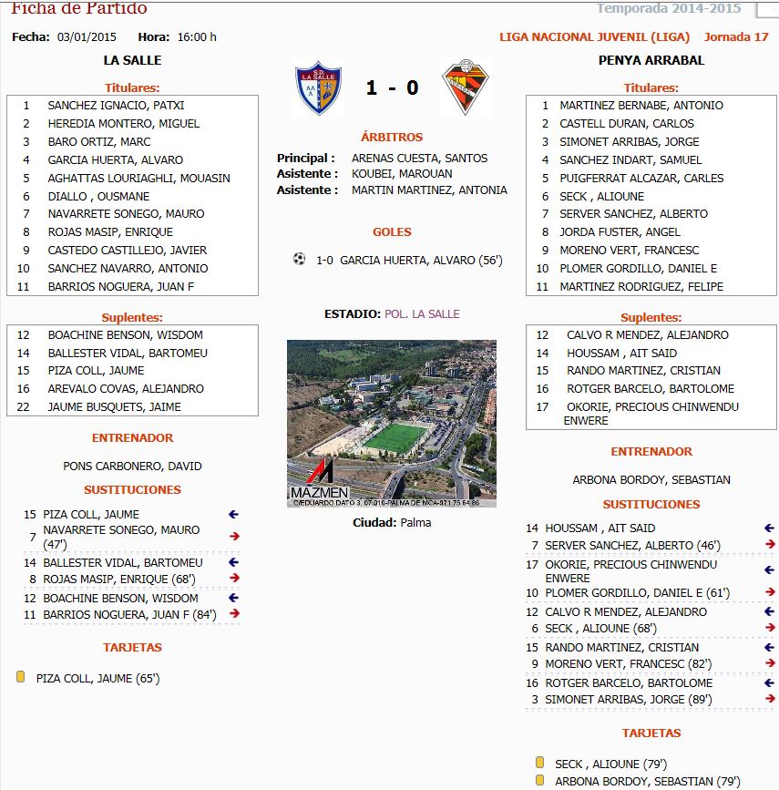 En definitiva partido que a nuestro entender deberÃa de haber quedado en un empate visto lo visto sobre el Terreno de juego y que hace a La Salle más lÃder a la espera de lo que pueda ocurrir el Domingo entre el Segundo y tercera Clasificado Ferriolense-Sporting Ciutat de Palma.
