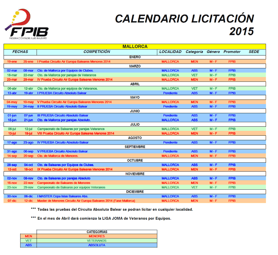 Os presentamos el calendario provisional para licitar los campeonatos oficiales de 2015, donde podréis observar numerosas novedades que iremos explicando dentro de muy poco.