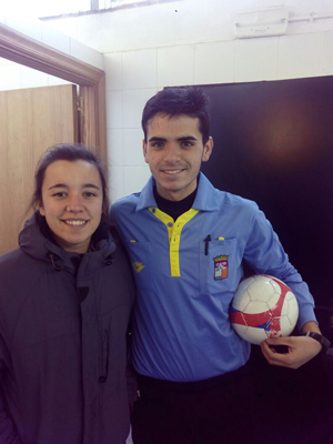 Aquí tenemos a Laura y a Pedro saludando a Arbitraje Balear antes de sus partidos en Sa Cabana. Dos compañeros, jóvenes y entusiastas, con muchas ganas y con un brillante futuro arbitral. ¥Seguid así, chicos!