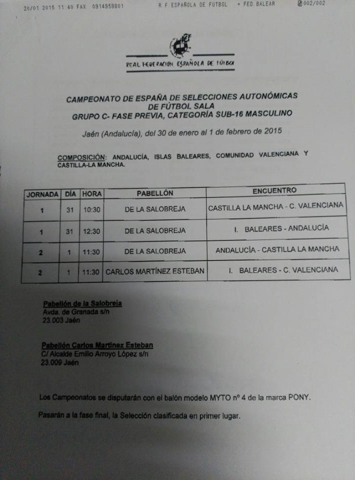 Cpto.España Selecciones Autonomicas Fútbol Sala Sub-16; Baleares-Andalucia (0-9) Valencia-Baleares (10-0 )