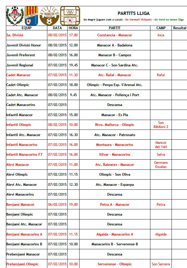 6 febrero 2015 | Por lorenzo | Categoria: Horarios y resultados