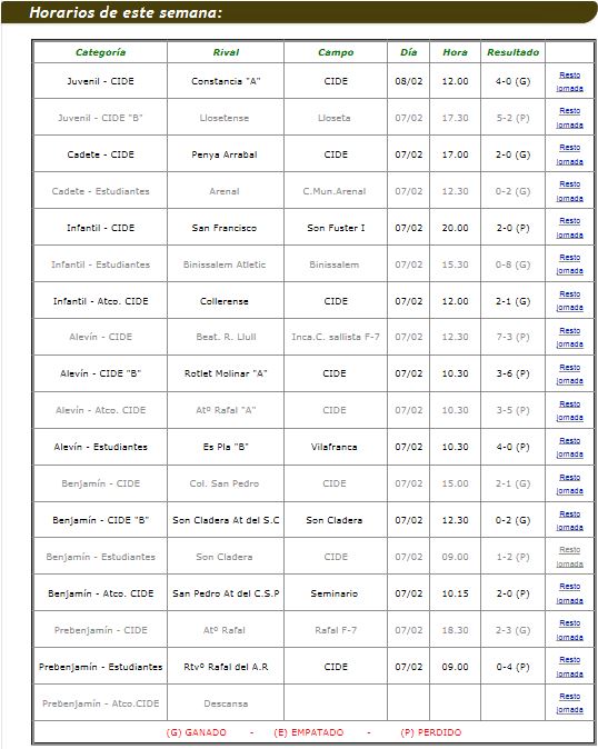 Estos son los resultados de este Fin de semana