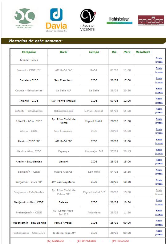 C.D.Cide; Horarios Fin de semana