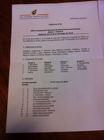 La Seleccion Balear ha quedado encuadrada en el Grupo A  junto a las selecciones de ARAGON – MELILLA – ASTURIAS y VASCA