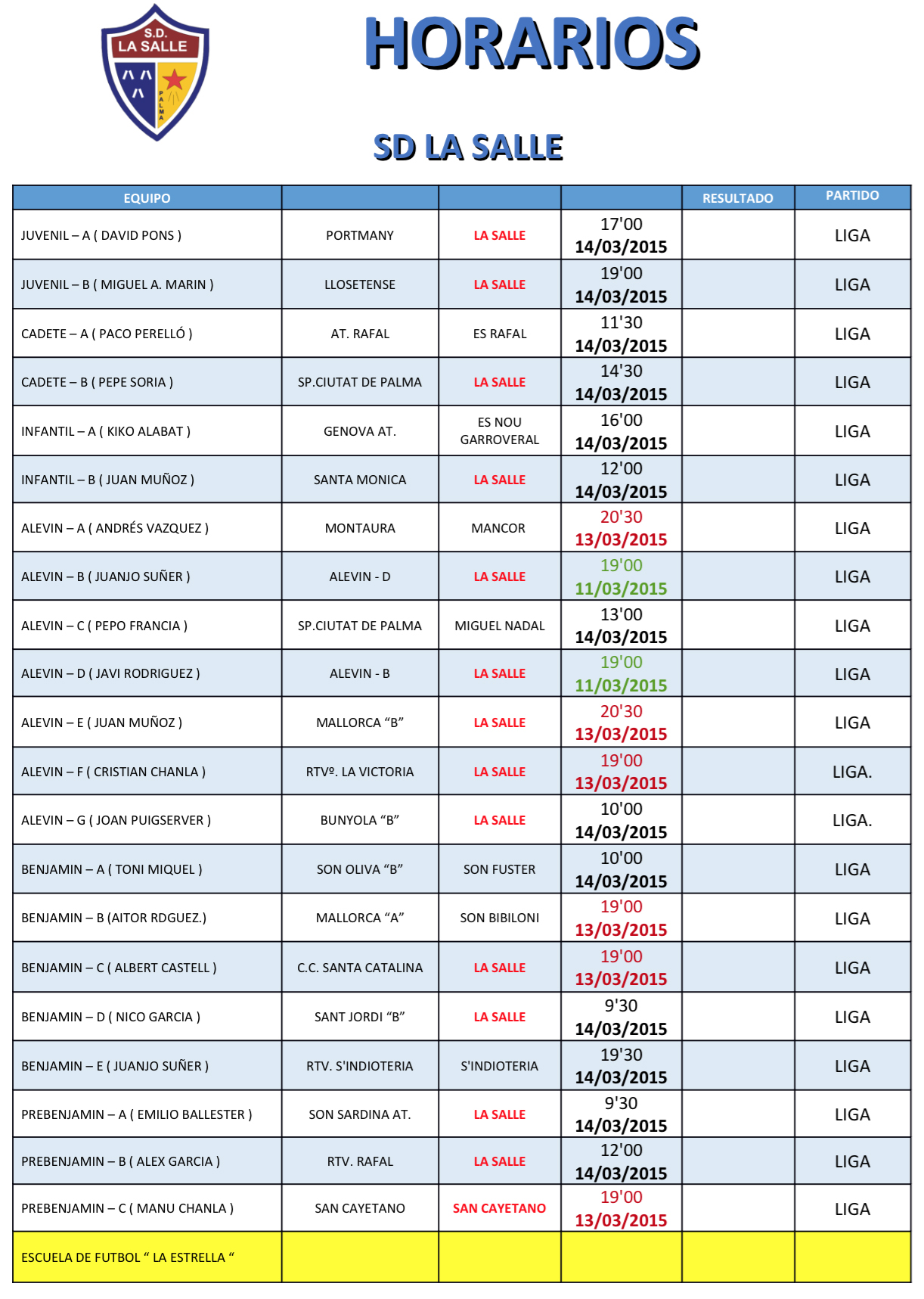 Estos son los horarios de los diferentes equipos del club para este proxĂmo fin de semana