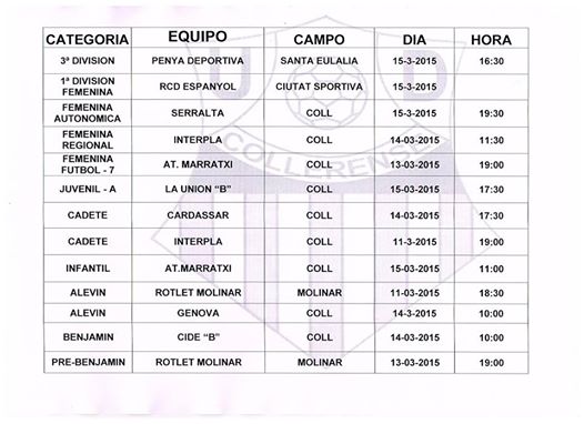 11 marzo 2015 | Por lorenzo | Categoria: Horarios y resultados