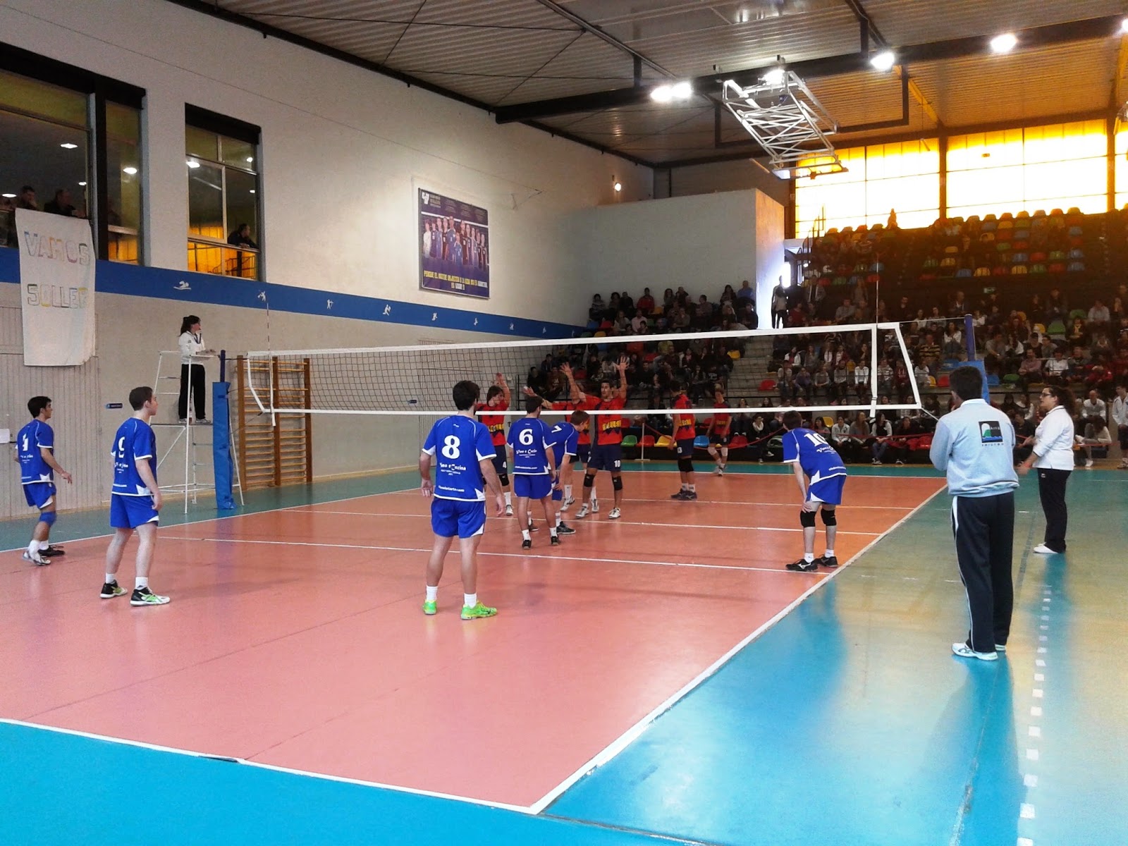 I arribĂ el diumenge i Son Angelats despertĂ amb pluja a defora, però amb sol i calor a dins el pavellĂł, tot a punt per arrancar l’espectacle i molt, molt de pĂşblic amb ganes de volei i espectacle…