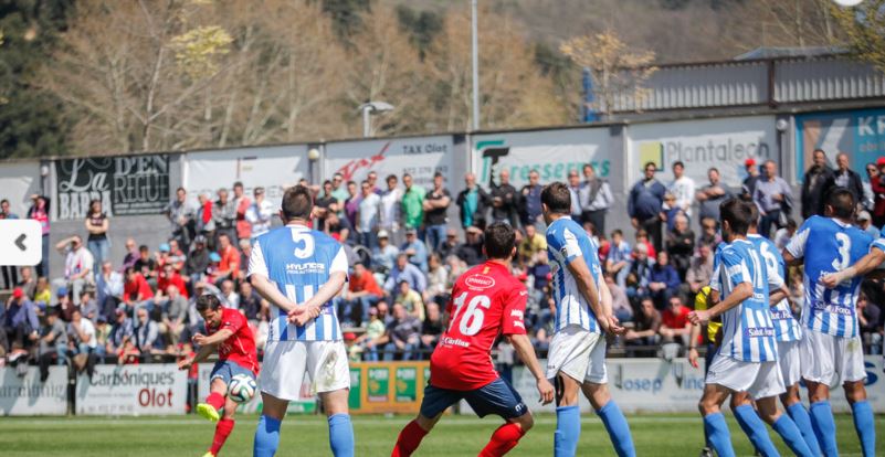 Incidències: partit corresponent a la jornada 32 del campionat de lliga del Grup 3 de Segona B amb la presència de 1.180 espectadors a l’Estadi Municipal d’Olot. Abans de començar el partit s’ha guardat un emotiu minut de silenci per les víctimes olotines de l’accident aeri dels Alps francesos.