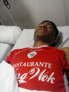 El jugador ha pasado la noche ingresado, bajo los cuidados del Dr. Miguel Durán, donde permanecerá varios dÃas ingresado, hasta su total recuperación, se le realizó TAC craneal con resultados satisfactorios asà como RX de hombro no viendo signos de rotura