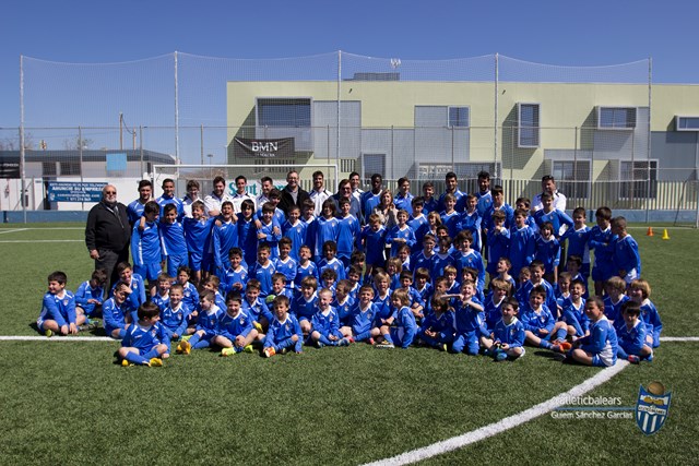 Más tarde han pasado por Son Malferit el presidente de la FFIB Miquel Bestard y la coordinadora del área de menores del Institut Mallorquí d’Afers Socials (IMAS) del Consell de Mallorca Teresa Martorell, acompañados de algunos miembros de la Fundación Atlético Baleares. Al acabar los parlamentos se ha hecho esta foto: