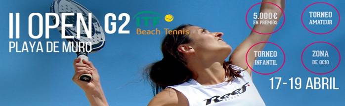 image004El próximo fin de semana, 17, 18 y 19 de abril, se celebrará en la Playa de Muro la 2ª edición del Open Playa de Muro BEACH TENNIS, torneo internacional de categoría G2, que repartirá 5.000€ en premios.