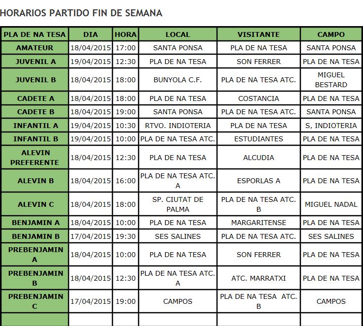 Estos son los horarios de los diferentes equipos del club este fin de semana