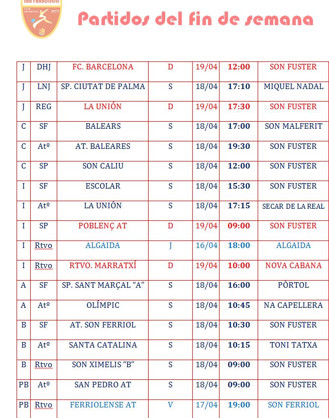 san franciscoEstos son los horarios de los diferentes equipos del club para este proxĂ­mo fin de semanaCaptura