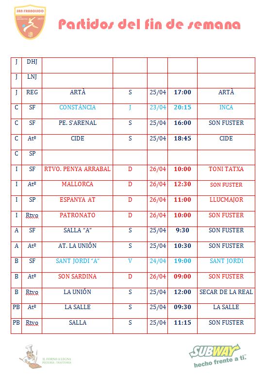 San Francisco AlevinEstos son los Horarios de los diferentes equipos del San francisco para este proxímo fin de semanaCaptura