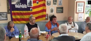 El grup «Amics de’n Tolo Güell», encapçalats pel popular personatge, varen poder fer tota classe de preguntes a Miquel Bestard. La majoria del que omplien el bar Vidal eren de la barriada dels Hostalets, molts d’ells antics futbolistes. La xerrada va ser molt animada i interessant.