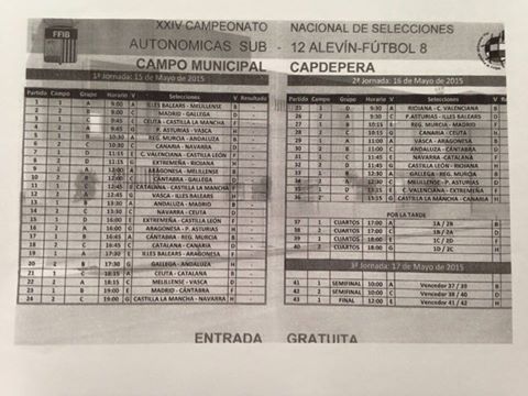 El día 15 (viernes) y la mañana del 16 (sábado) se jugarán los partidos en cada grupo de todos contra todos en el Campo Municipal de Capdepera. De ahí saldrán dos selecciones de cada grupo para jugar los Cuartos de Final el sábado por la tarde.El día 17 (domingo) a las 10 se jugarán las dos semifinales, para llegar a la Final de las 12 horas.