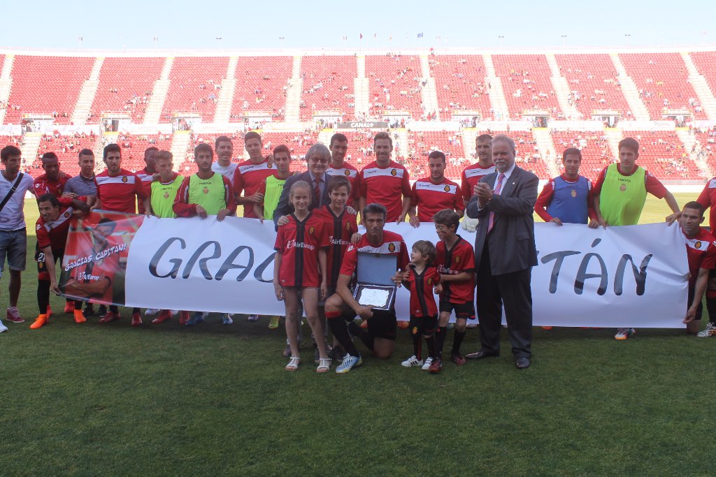 1433099722_1Pep Lluís Martí ha jugado hoy su último partido como jugador del Mallorca en el Iberostar Estadio. Por eso, el club le ha hecho entrega de una placa como reconocimiento a su larga trayectoria profesional y su ardua dedicación al club.
