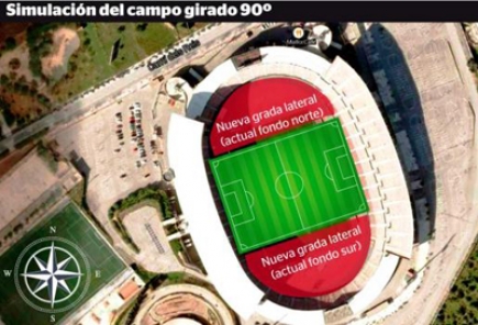 SerÃa un proyecto novedoso y que básicamente constarÃa en girar el terreno de juego 90 grados y a su vez acercar los dos fondos para evitar de esta forma que las tribunas estén lejos del terreno de juego.