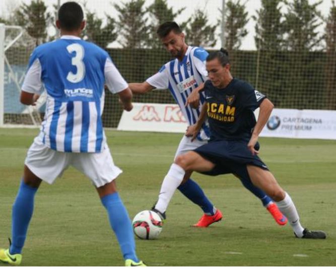 38′- Pudo marcar el UCAMMurcia CF en un bal贸n suelto tras un c贸rner, pero la zaga rival despej贸. 0-0.