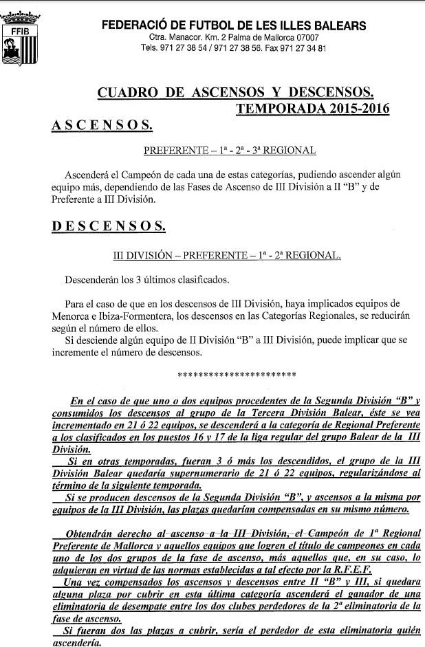 La FFIB ha dado a conocer las Bases para Ascensos y Descensos de las diferentes CategorĂas