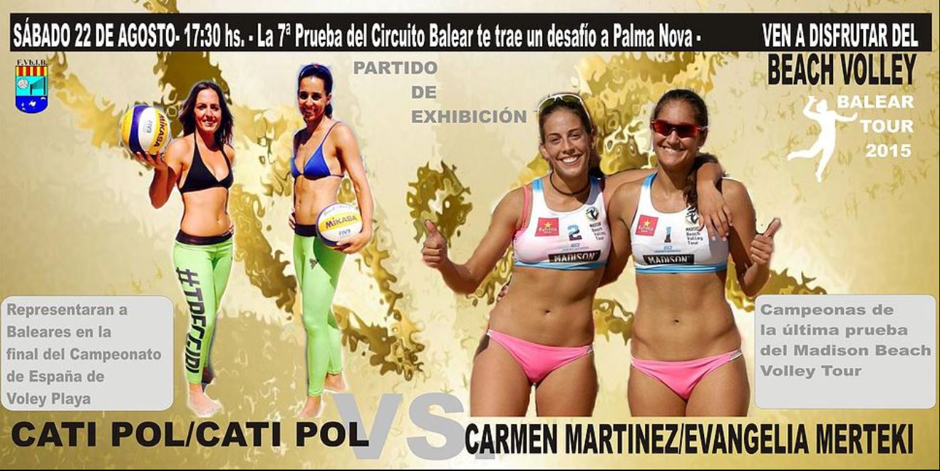 20 agosto 2015 | Por lorenzo | Categoria: PolideportivoLa SEPTIMA prueba del circuito balear llega a Palma Nova, con la organizacion del Club Voleibol Son Ferrer esta prueba estara acompañada de un espectacular ambiente, el evento comienza el viernes con la disputa del torneo mixto, mientras que el sabado por la mañana comienzan las pre previas, por la tarde del sabado se disputaran las previas y dara comienzo el cuadro principal Masculino, el Femenino el domingo y de forma simultanea se disputara la quinta y ultima Prueba del Circuito Infantil, cadete y Alevin.
