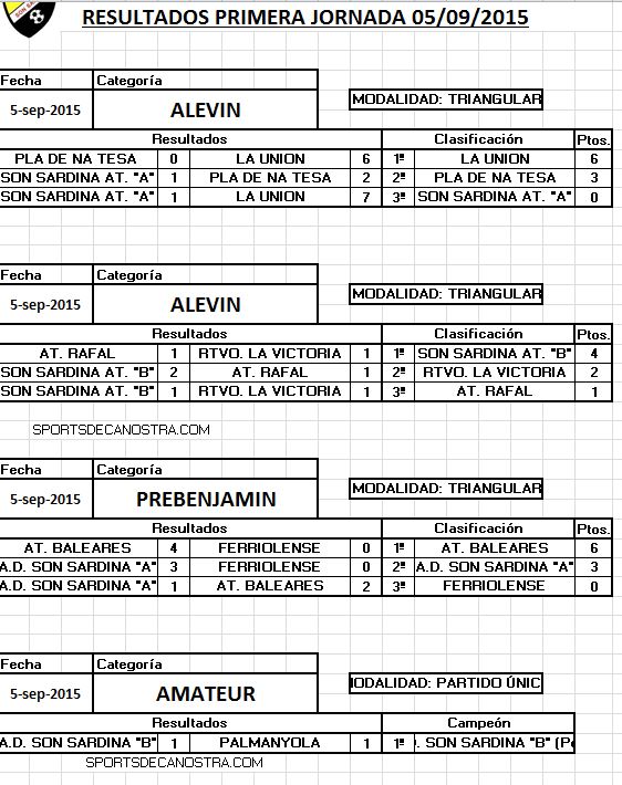 RESULTADOS QUINTA JORNADA 09/09/2015