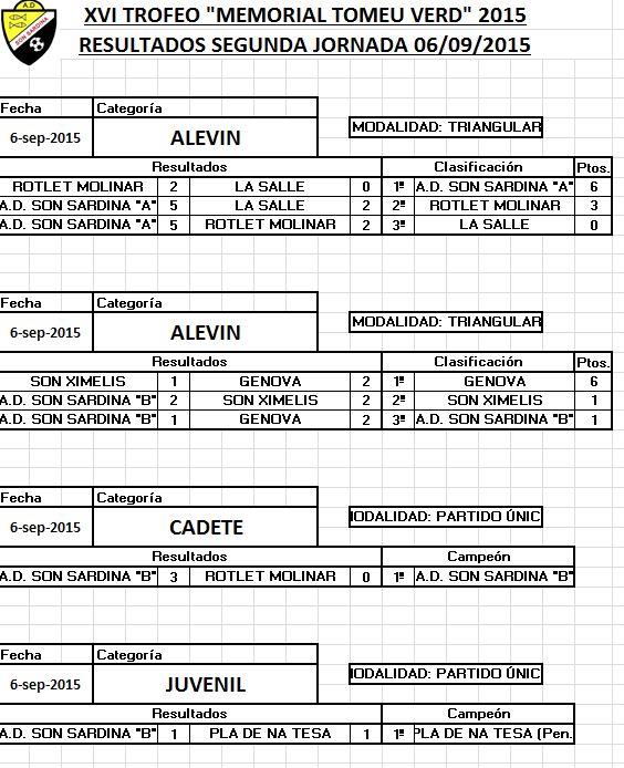 RESULTADOS SEXTA JORNADA 10/09/2015