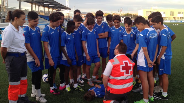 CRUZ ROJALa Creu Roja y la Fundación de la Federación de Fútbol de les Illes Balears (FFIB) se comprometen a formar en primeros auxilios al fútbol base balear. La primera sesión formativa se ha realizado hoy en las instalaciones del Club Esportiu Atlètic Balears con el grupo Infantil A.