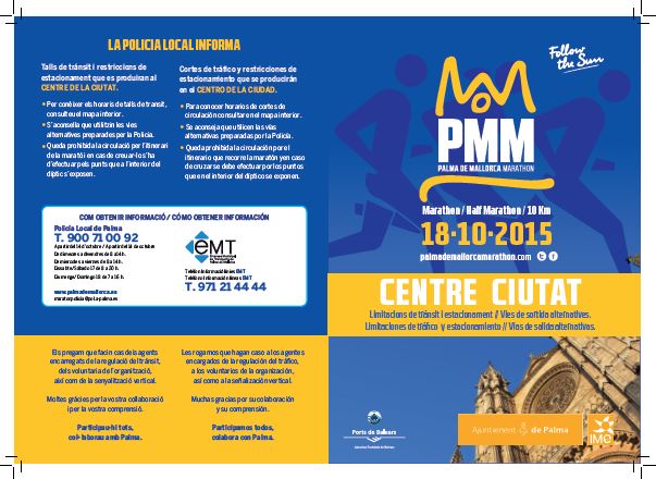 L’Ajuntament de Palma informa de les modificacions circulatòries amb motiu de la Palma de Mallorca Marathon (18-10-2015)‏