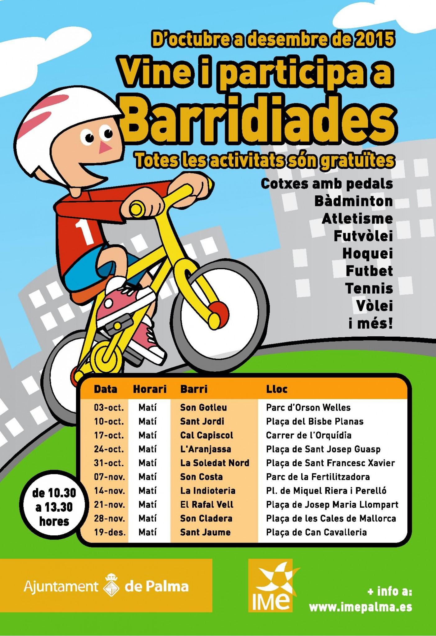 Les Barridiades es realitzen cada dissabte de 10.30 a 13.30h en un barri diferent i ofereixen bàdminton, atletisme, futvòlei, hoquei, futbet, tennis, cotxes amb pedals; un circuit d’iniciació a la psicomotricitat per als més petits, així com un circuït  d’educació vial supervisat pels policies locals d’educació viaria.
