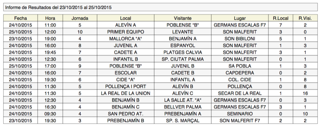 At.Baleares; Resultados Fútbol Base del Fin de semana