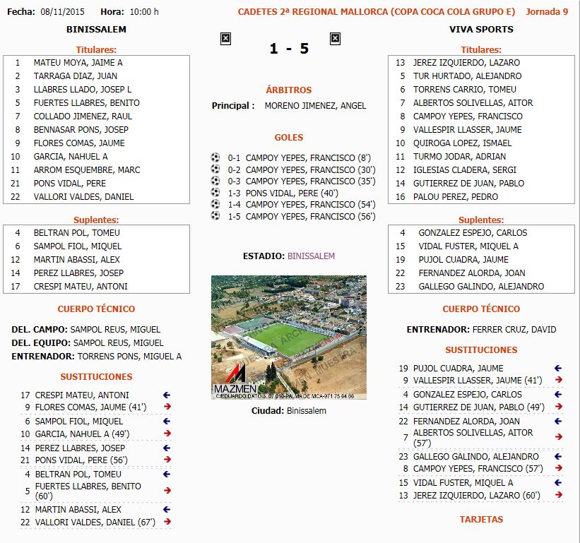 Cadetes 2ª regional grupo Coca Cola E (Binissalem «B» – Viva Sports)‏