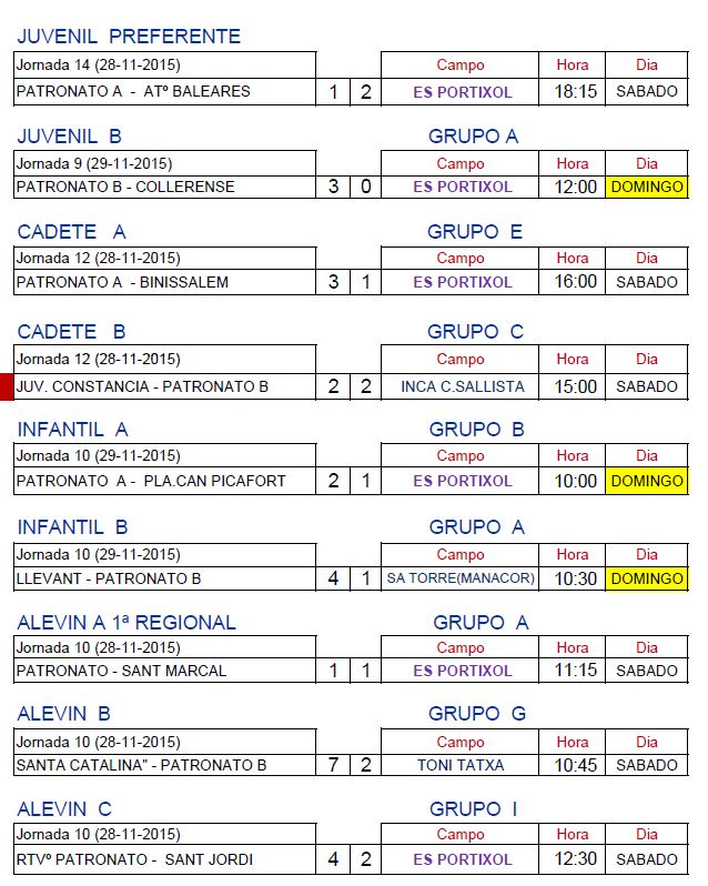Estos son los resultados de los equipos del club este pasado fin de semana
