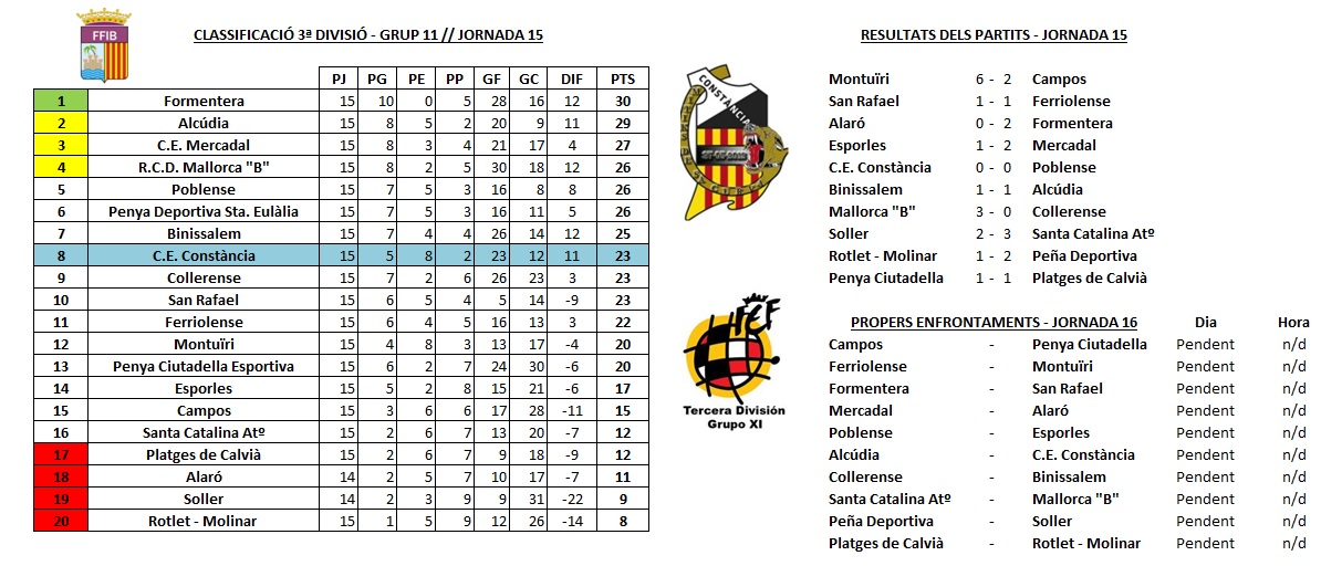 C.E Constancia (Mitiks De Sa Curva) Classificació del grup XI de la Tercera Divisió Balear