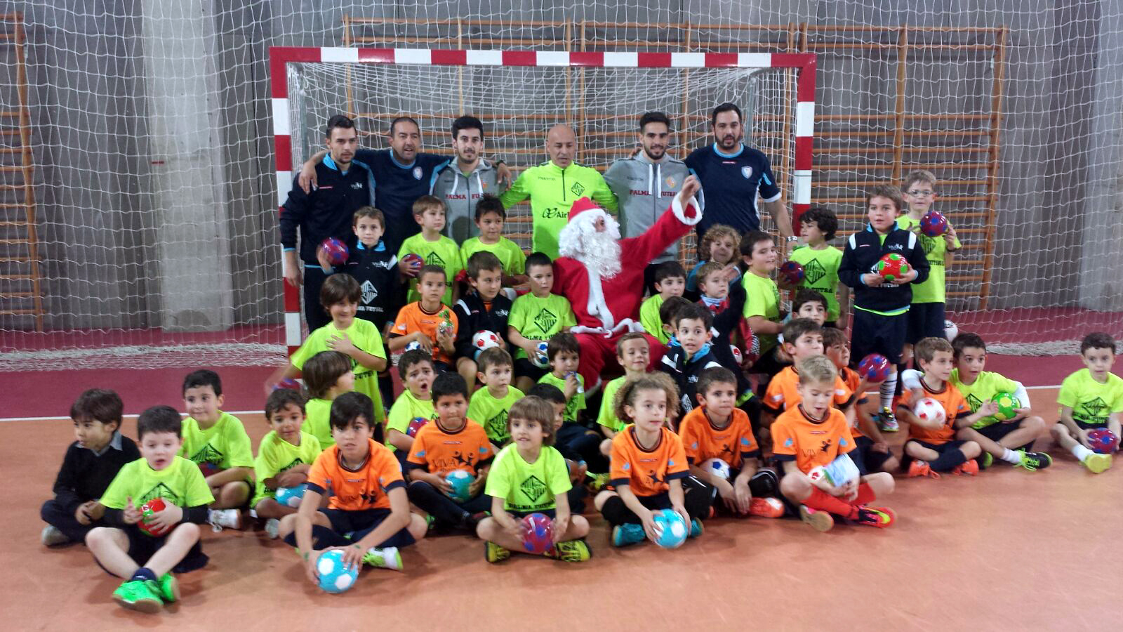Papá Noel llega a la escuela infantil de Palma Llega la Navidad también al Palma Futsal que ha comenzado con las iniciativas y actos típicos de estas fechas. Una de las novedades ha sido la llegada de Papá Noel a la escuela infantil que el club tiene en Palma para entregar regalos a todos los niños que se han portado bien este año y que ha llegado acompañado de Juanito, Chicho y Joselito que han arropado el acto para estar cerca de los niños con los que comparten las actividades cada jueves. Cada semana dos jugadores del primer equipo ayudan a los monitores de la escuela en las actividades y juegos que realizan y participan de forma activa en las sesiones. Es una forma de acercar a los jugadores profesionales a la base y que los niños puedan conocer los secretos del fútbol sala de primera mano de los referentes del primer equipo.